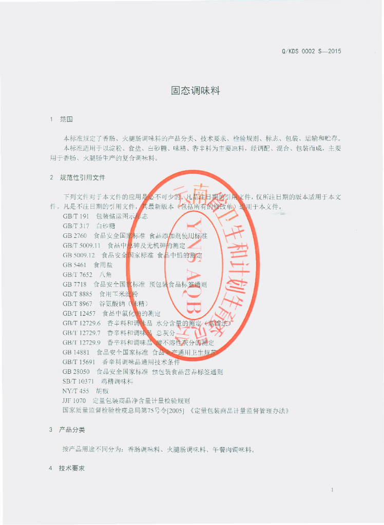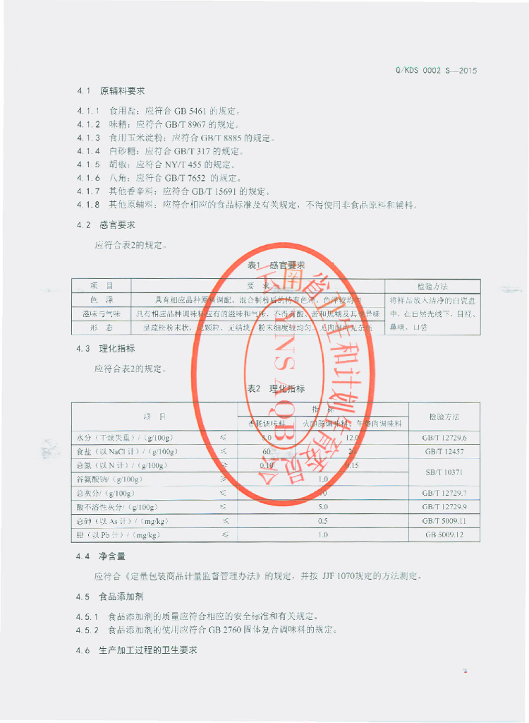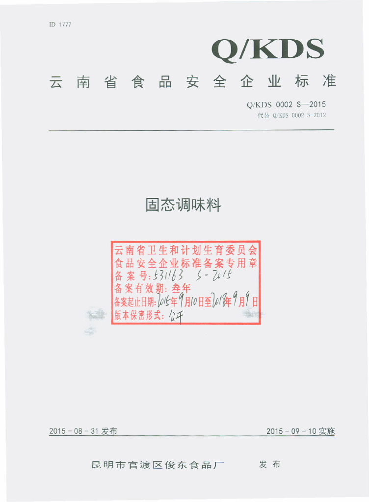 Q/KDS 0002S-2015 昆明市官渡区俊东食品厂 固态调味料