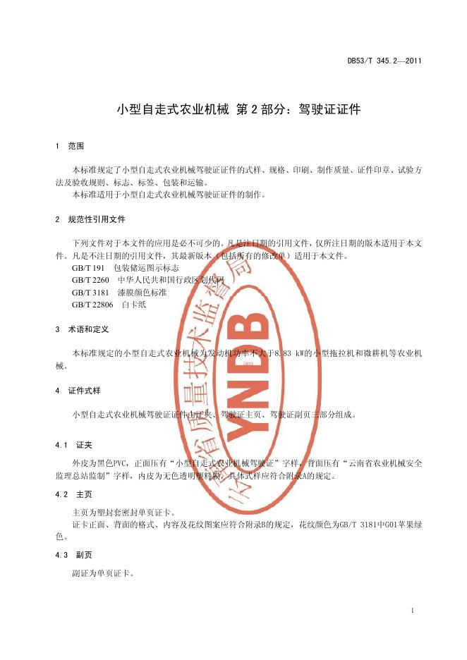 DB53/T 345.2-2011 小型自走式农业机械 第2部分: 驾驶证证件