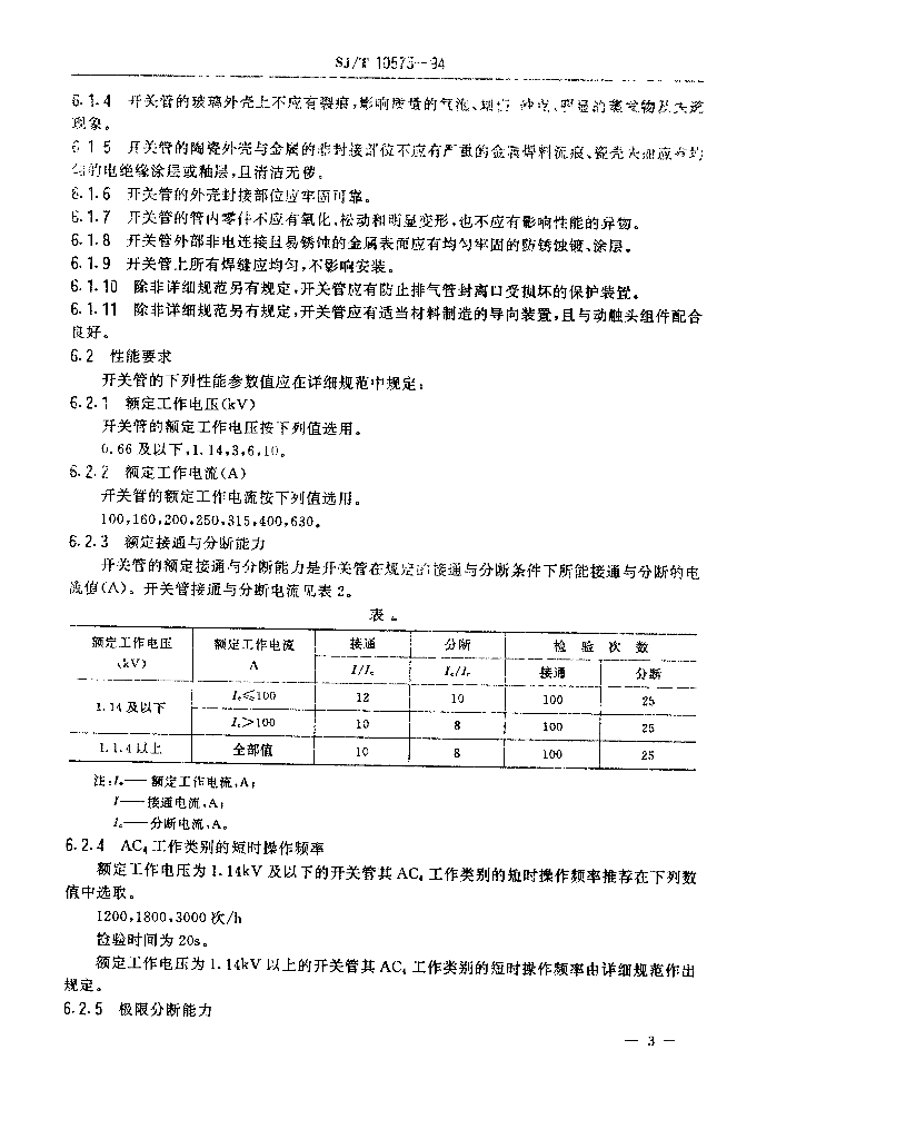 SJ/T 10575-1994 接触器用真空开关管总规范