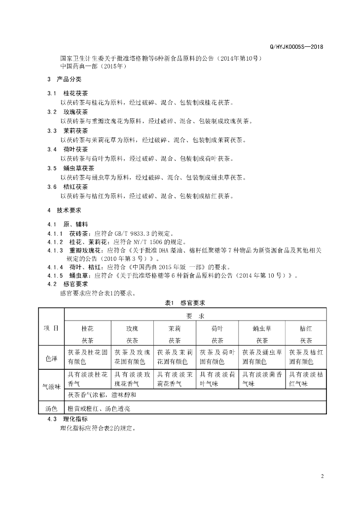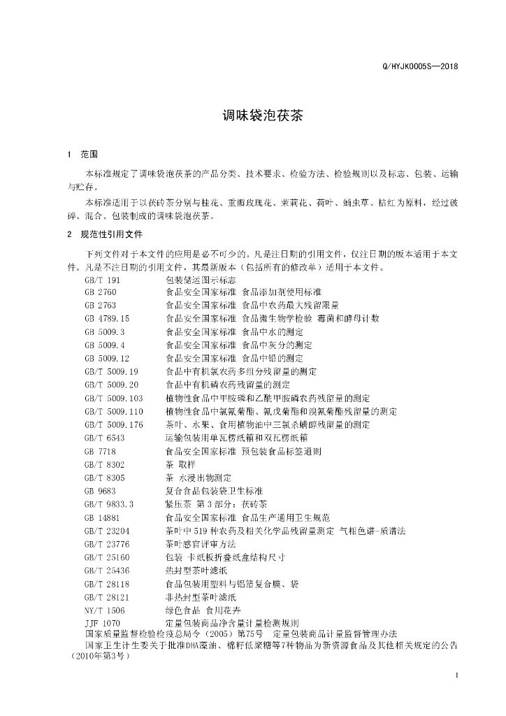 Q/HYJK 0005S-2018 调味袋泡茯茶