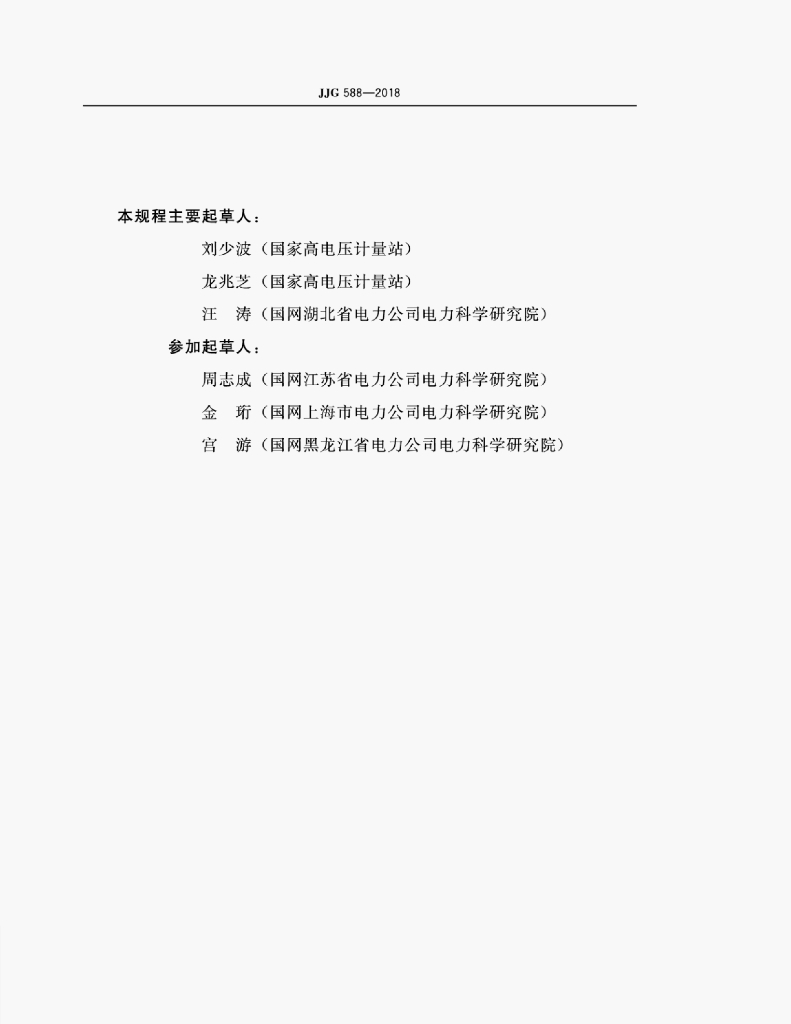 刘少波(国家高电压计量站)、龙兆芝(国家高电压计量站)、汪涛(国网湖北省电力公司电力科学研究院)、周志成(国网江苏省电力公司电力科学研究院)、金珩(国网上海市电力公司电力科学研究院)、宫游(国网黑龙江省电力公司电力科学研究院)