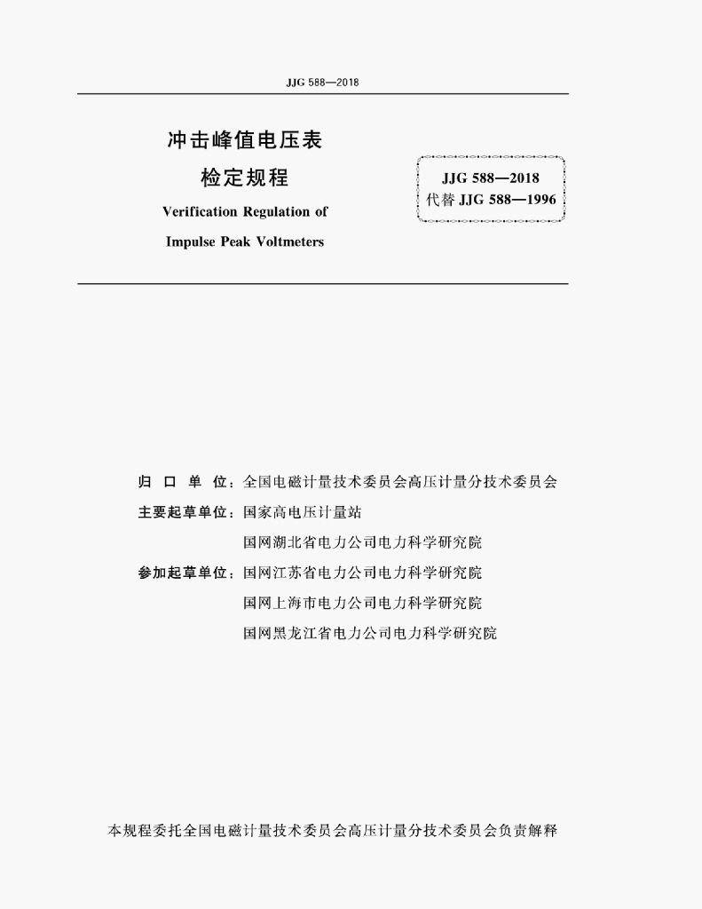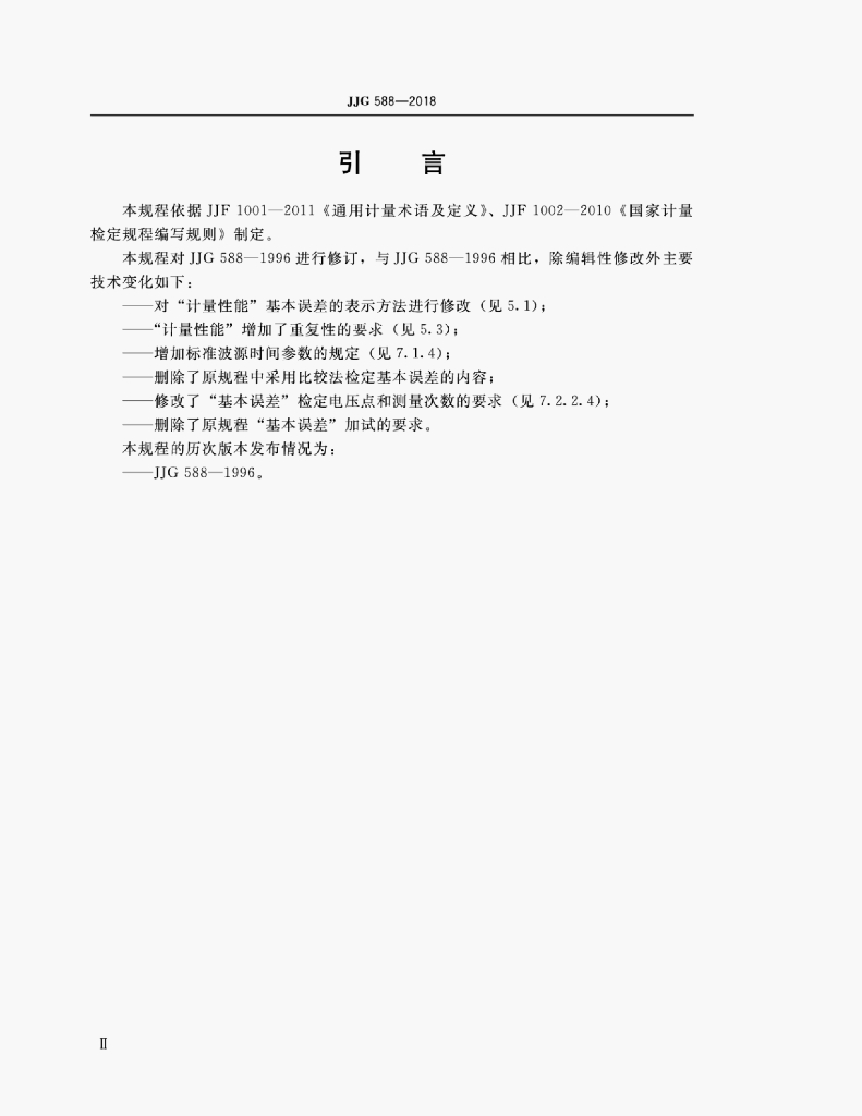 - 代替标准:JJG 588-1996