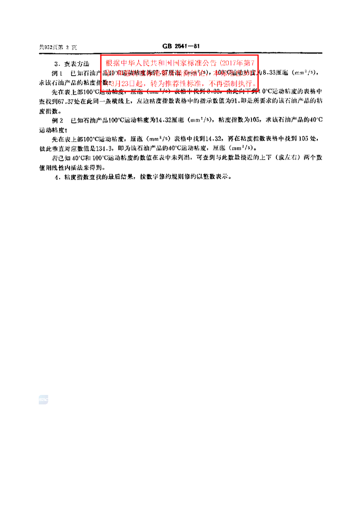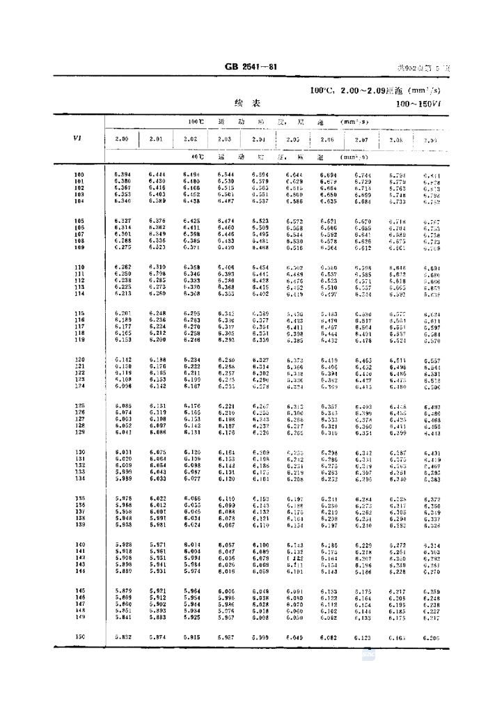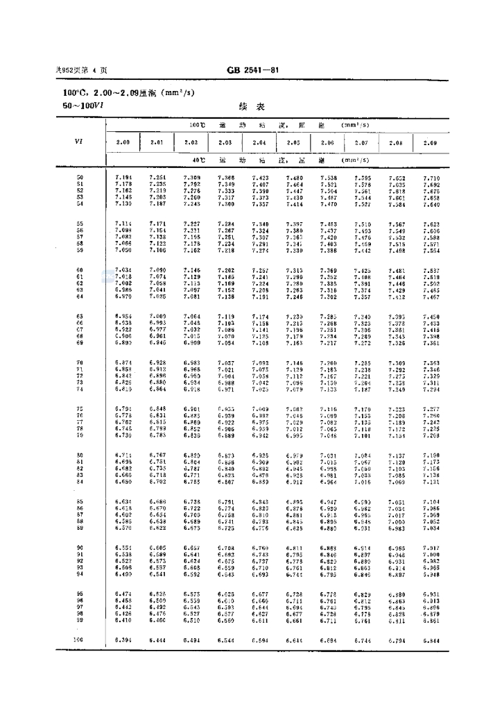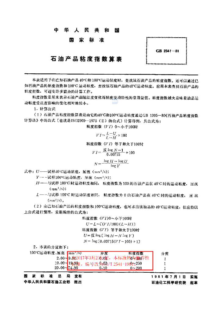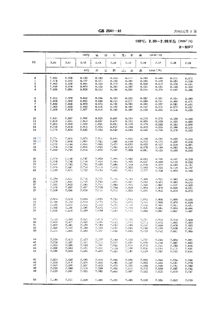 GB/T 2541-1981 石油产品粘度指数算表