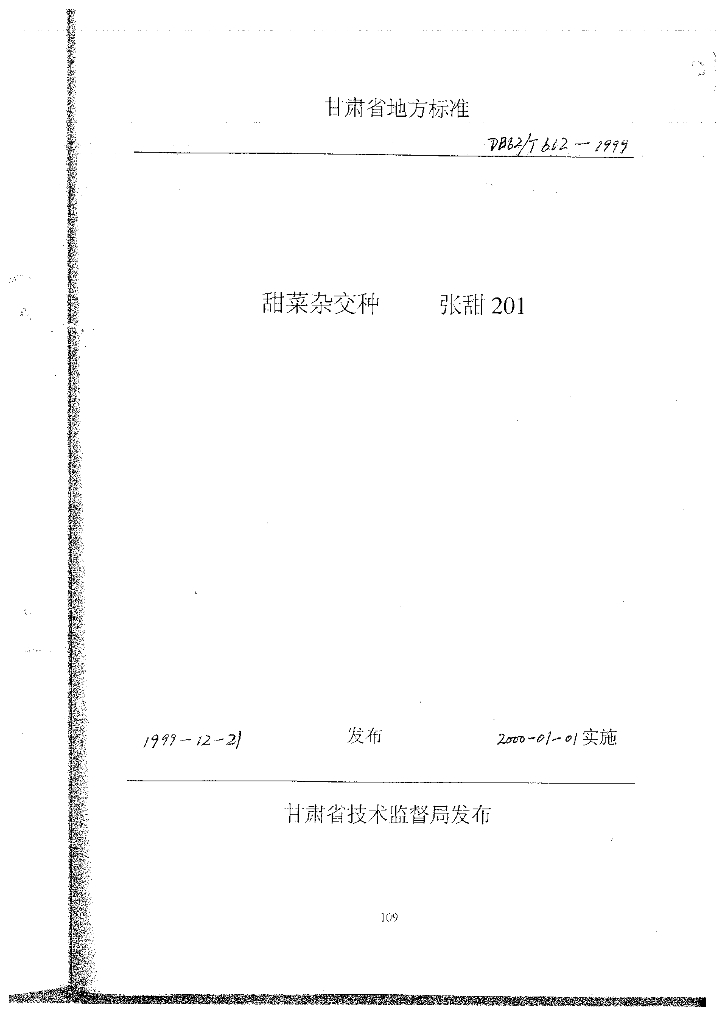 DB62/T 612-1999 甜菜杂交种张甜201