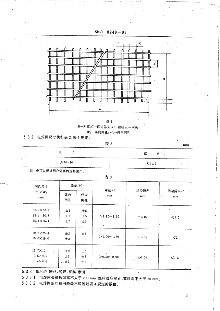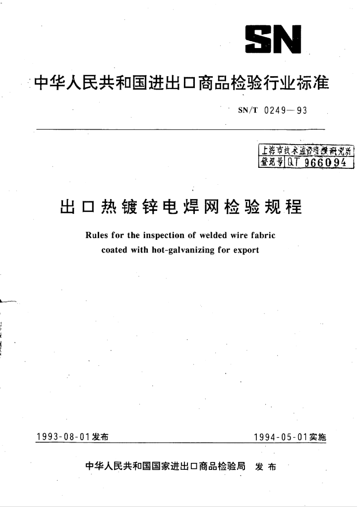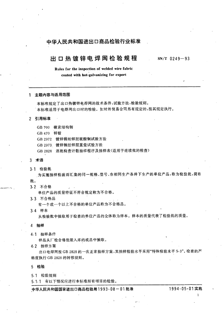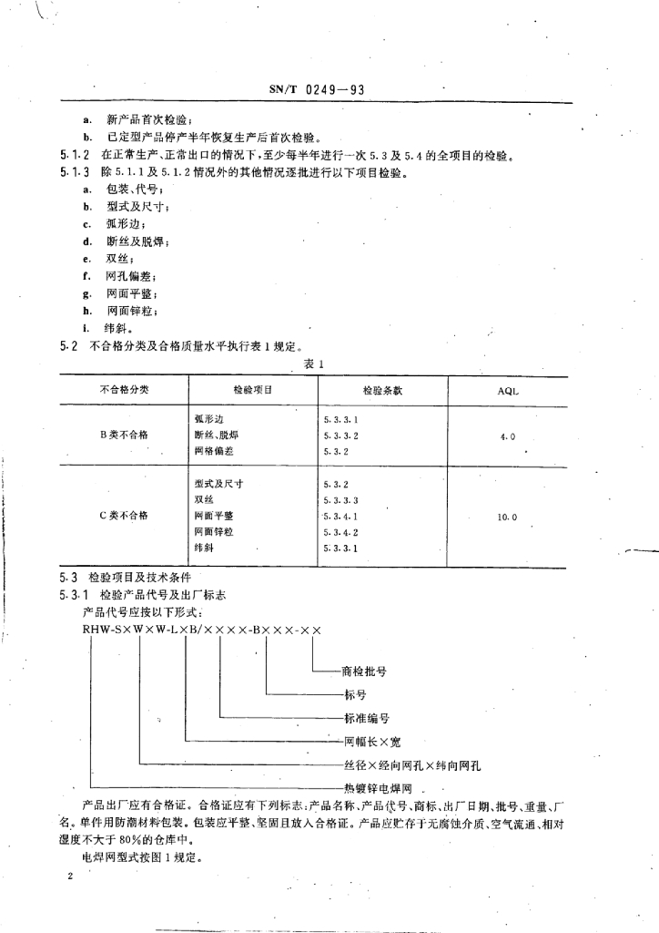 SN/T 0249-1993 出口热镀锌电焊网检验规程