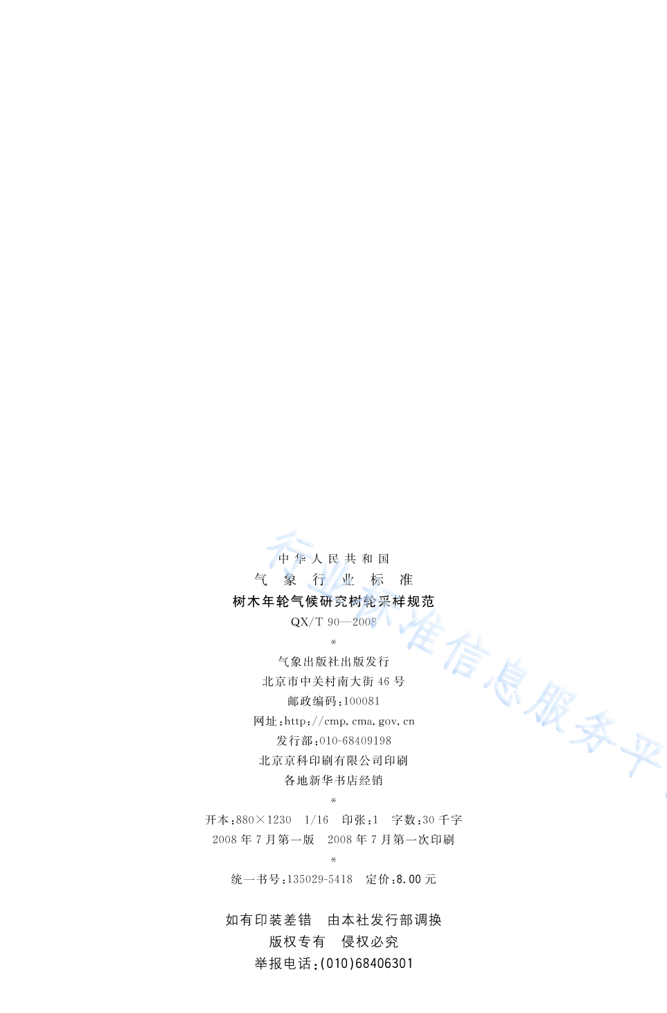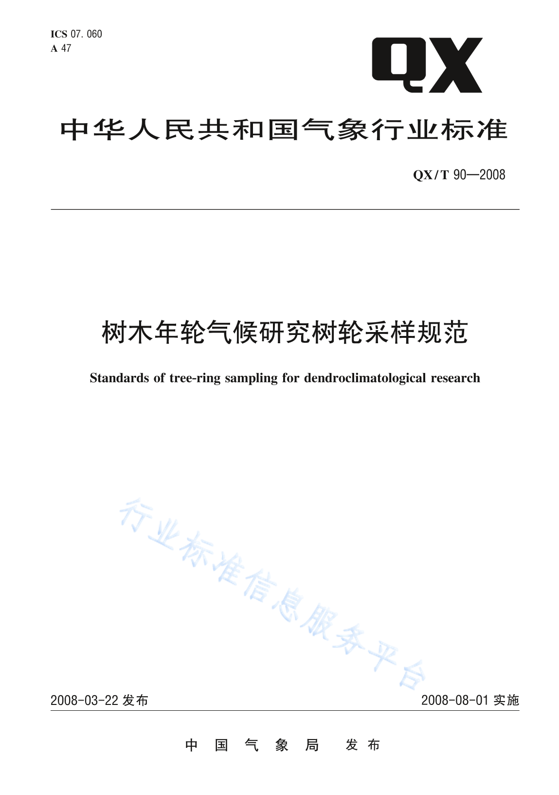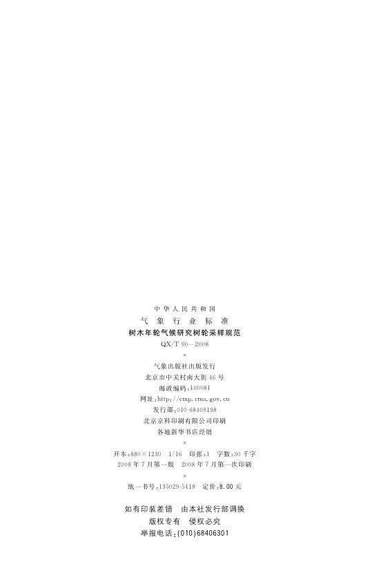 QX/T 90-2008 树木年轮气候研究树轮采样规范