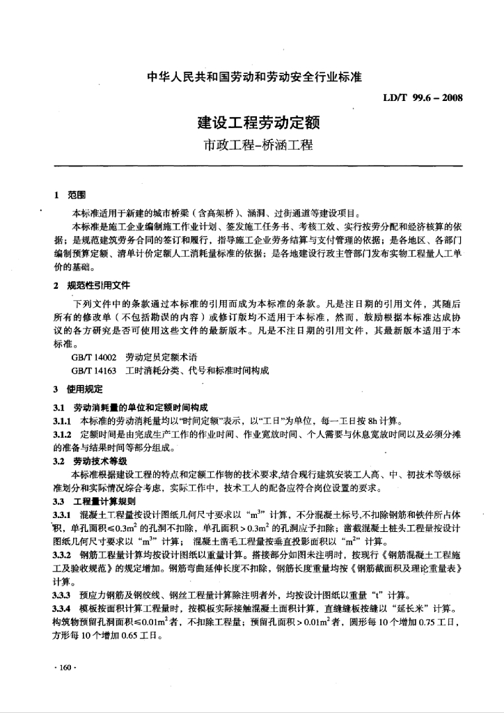 LD/T 99.6-2008 建设工程劳动定额市政工程-桥涵工程