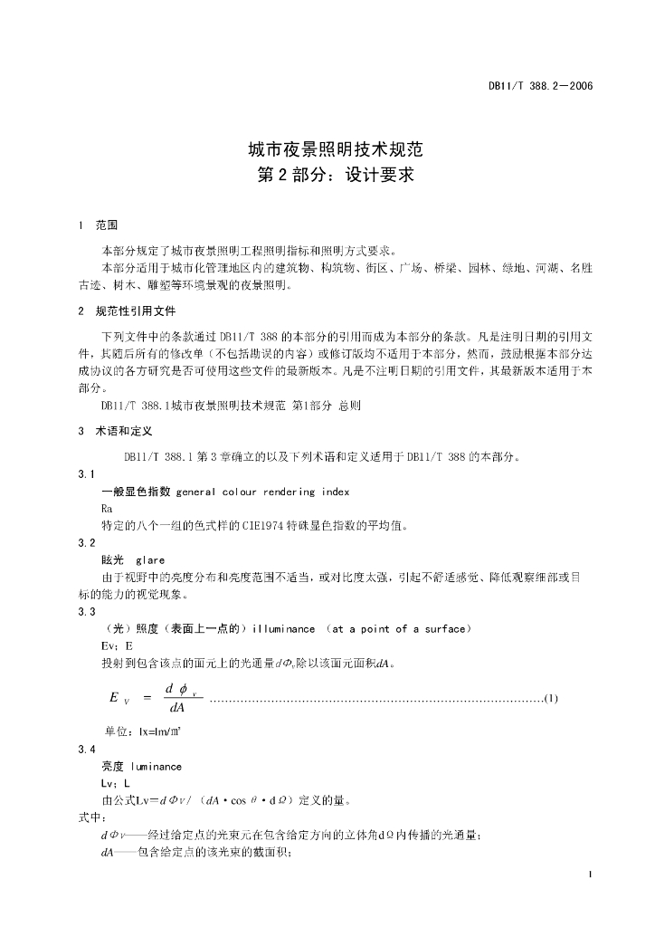 DB11/T 388.2-2006 城市夜景照明技术规范 第2部分:设计要求