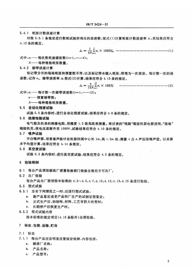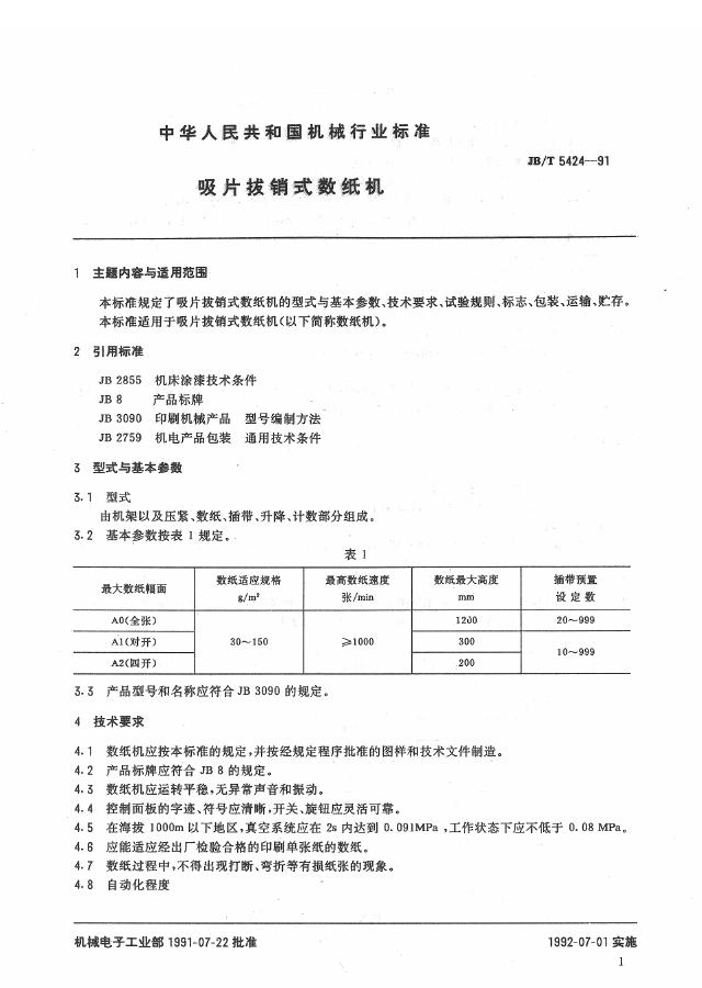 JB/T 5424-1991 吸片拔销式数纸机