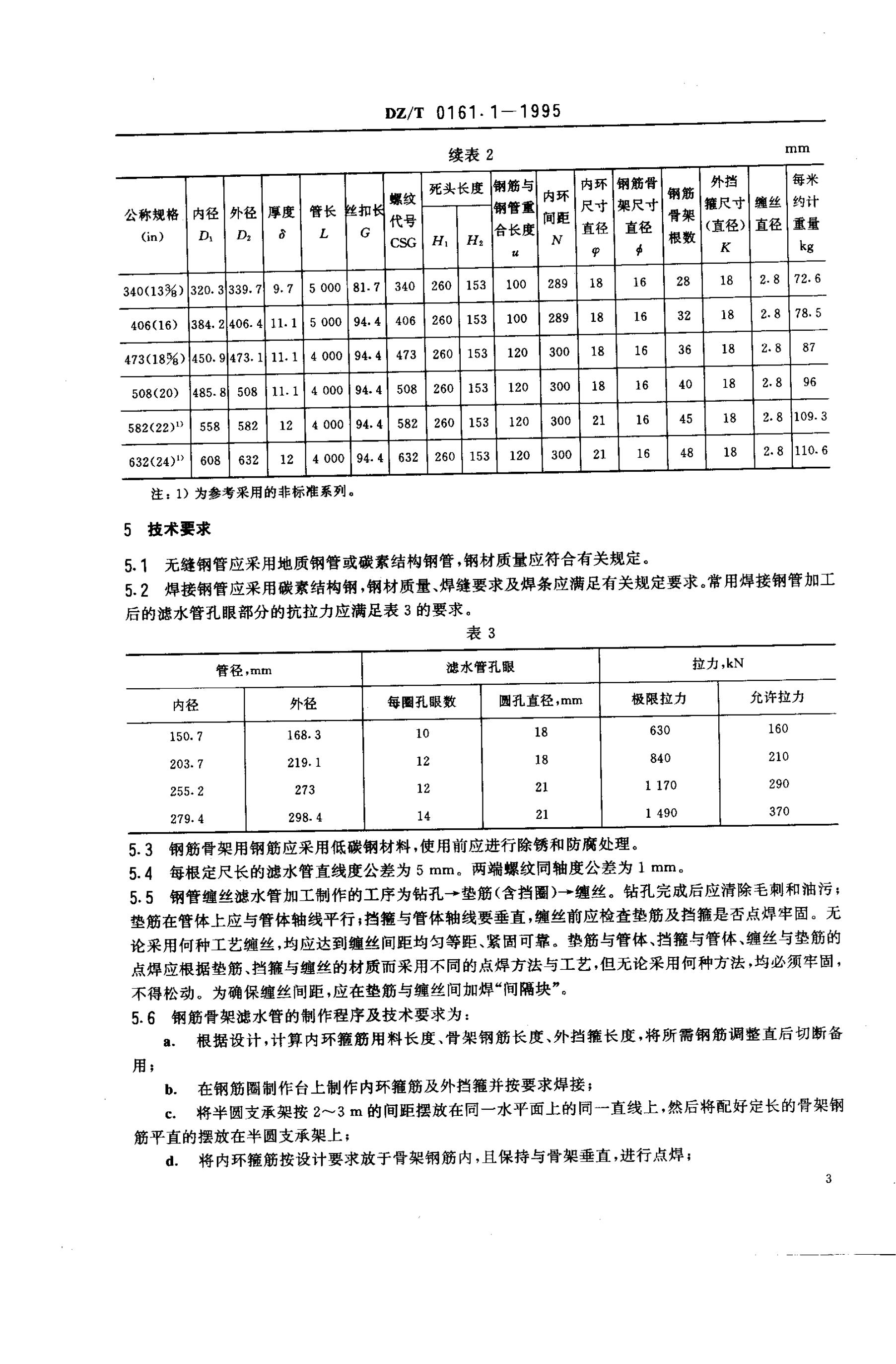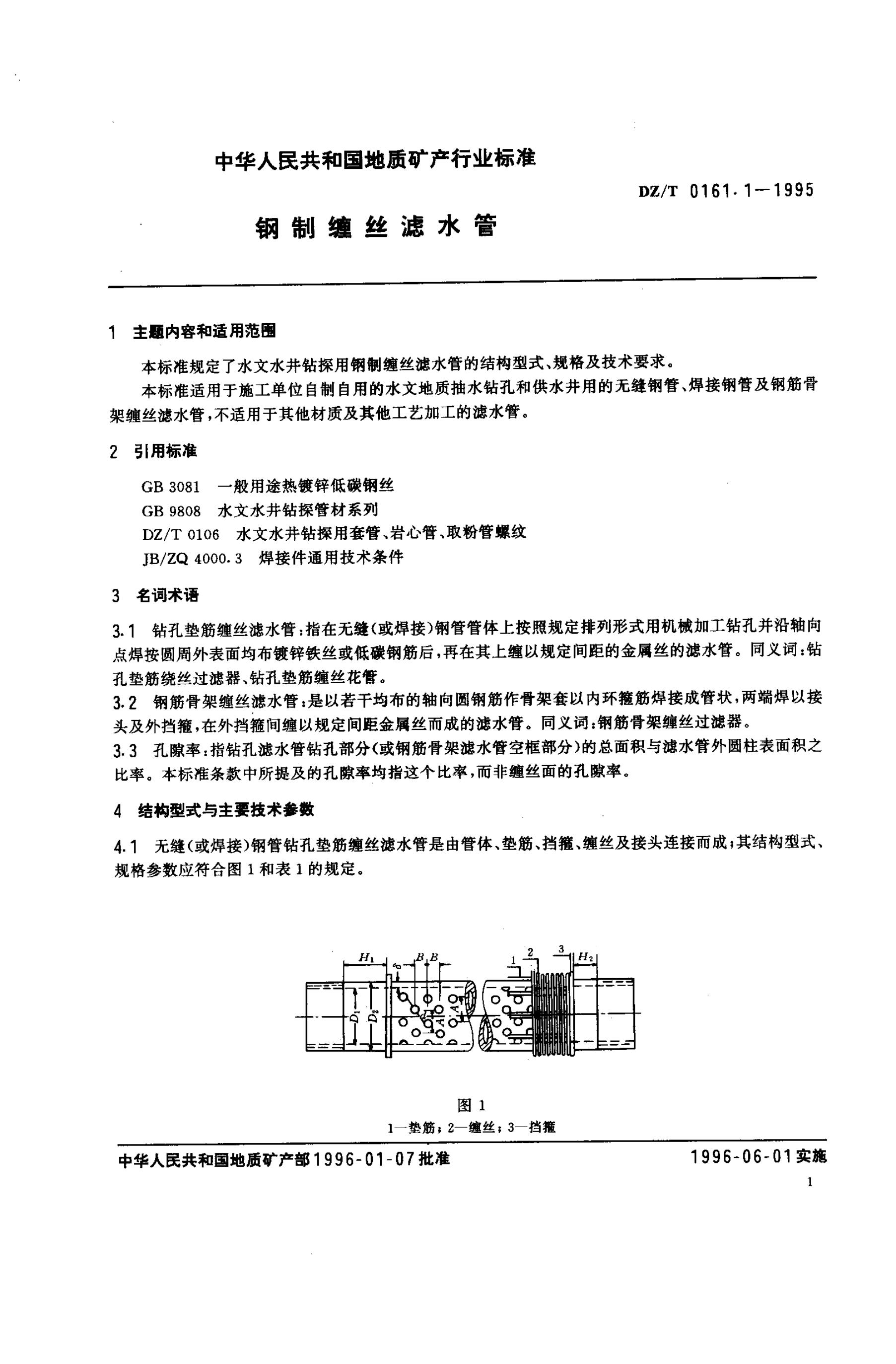DZ/T 161.1-1995 钢制缠丝滤水管