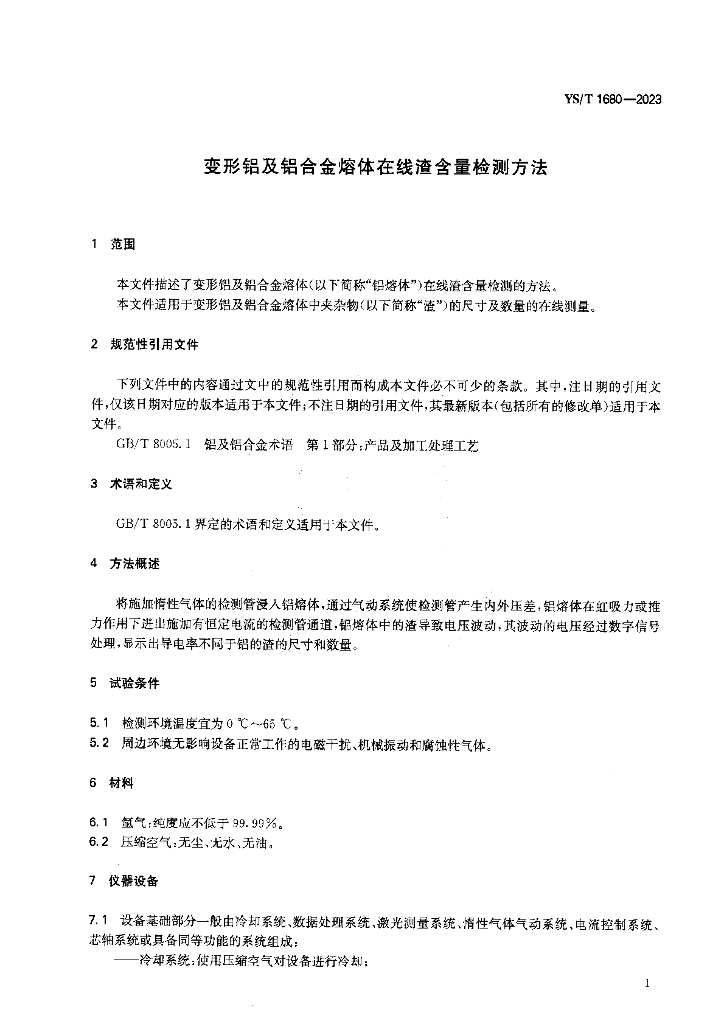 YS/T 1680-2023 变形铝及铝合金熔体在线渣含量检测方法