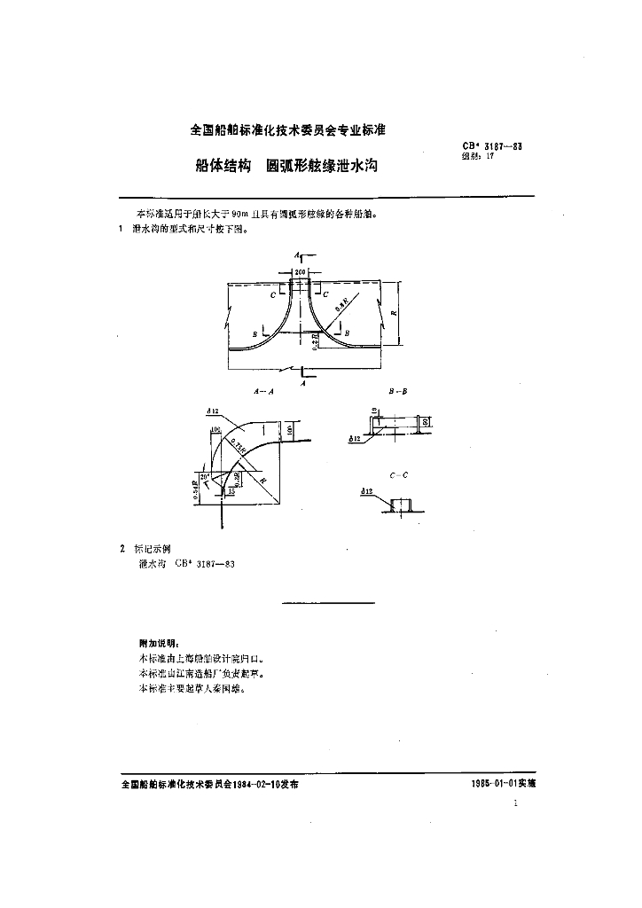CB 3187-1983 船体结构 圆弧形舷缘泄水沟