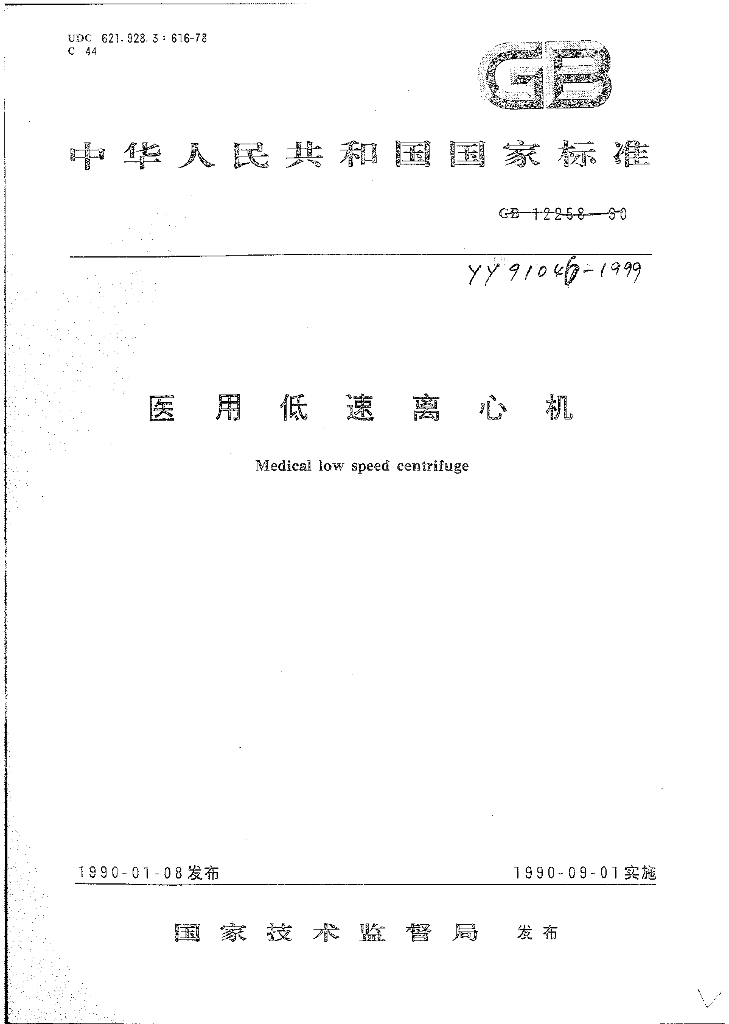 YY 91046-1999 医用低速离心机