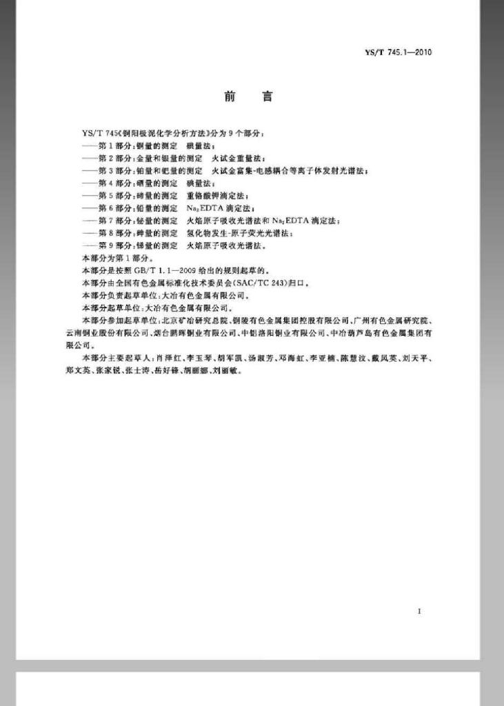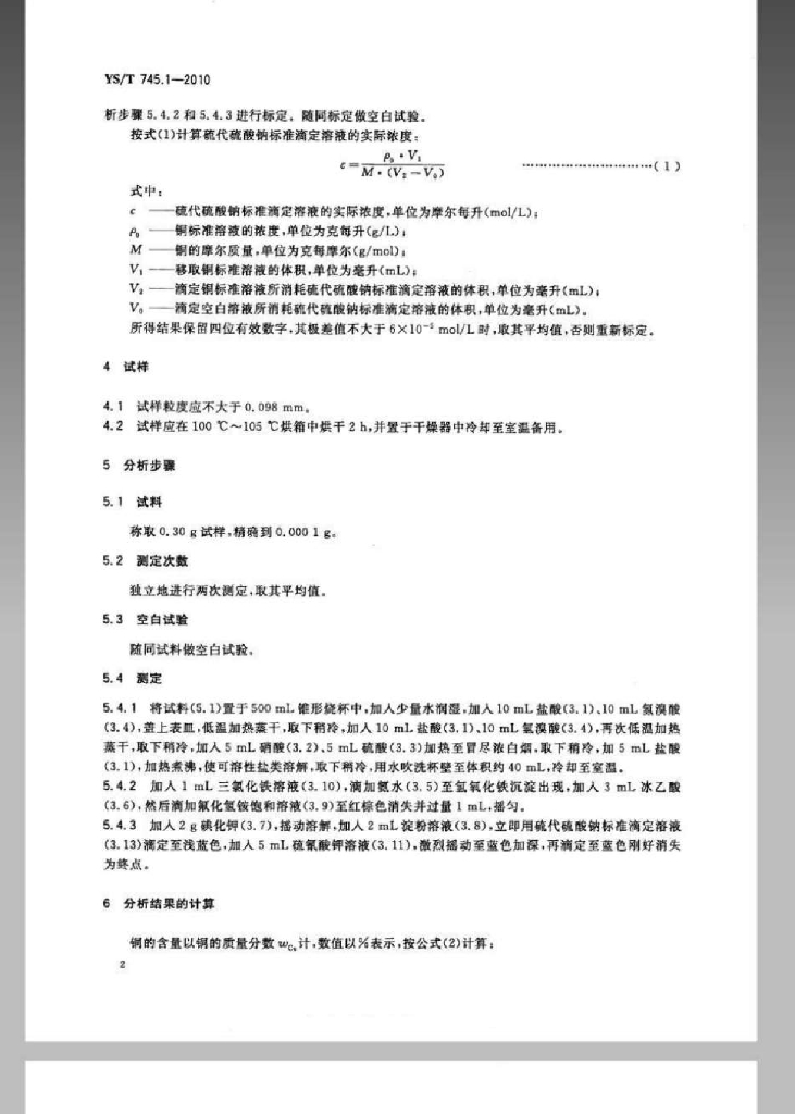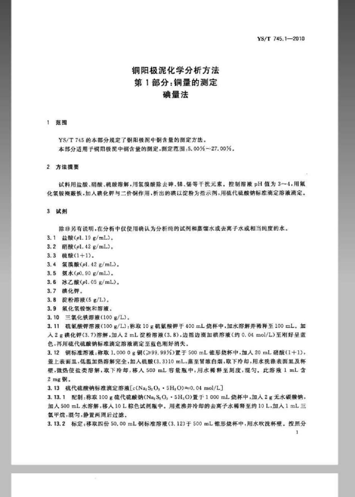 YS/T 745.1-2010 铜阳极泥化学分析方法 第1部分:铜量的测定碘量法