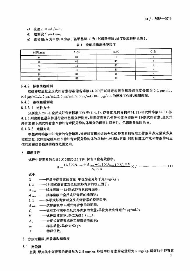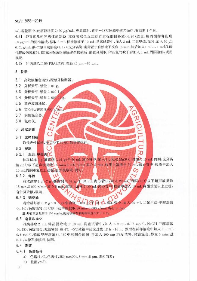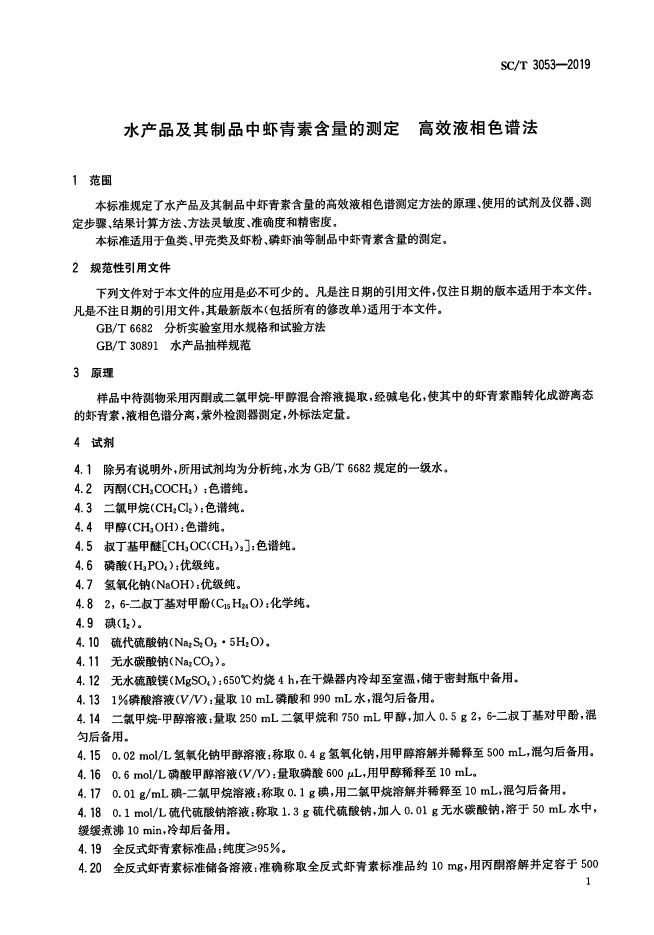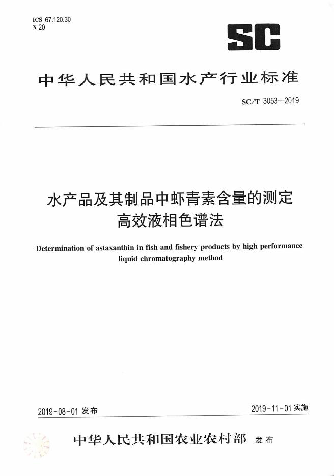 SC/T 3053-2019 水产品及其制品中虾青素含量的测定 高效液相色谱法
