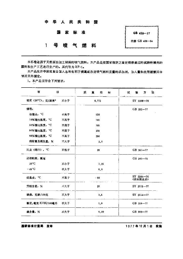 GB 438-1977 1号喷气燃料