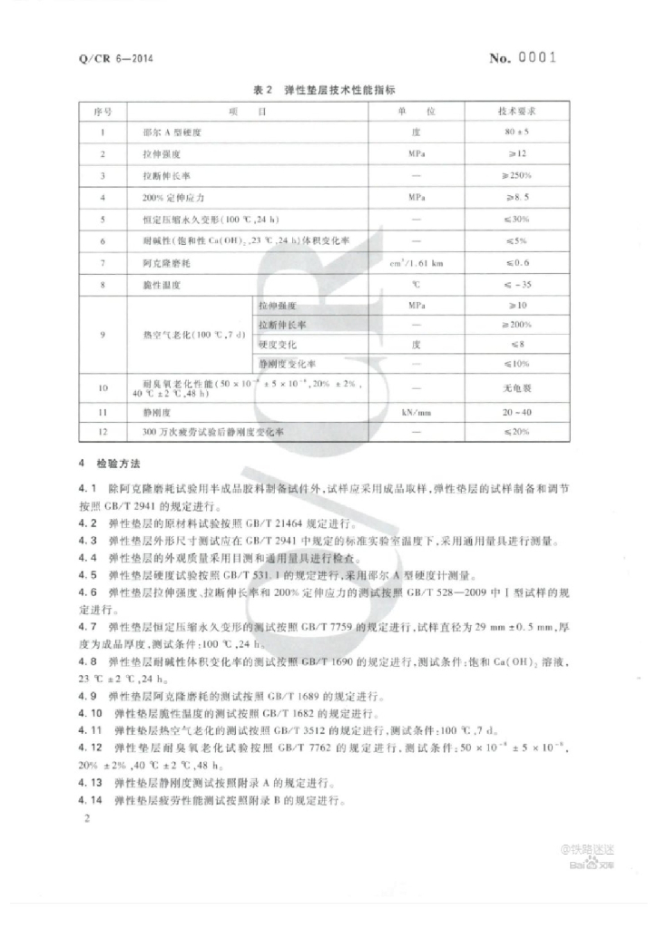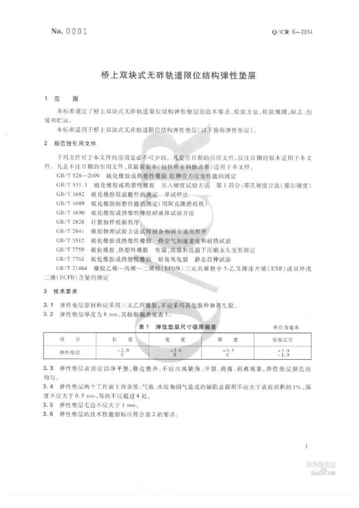 Q/CR 6-2014 桥上双块式无砟轨道限位弹性垫层