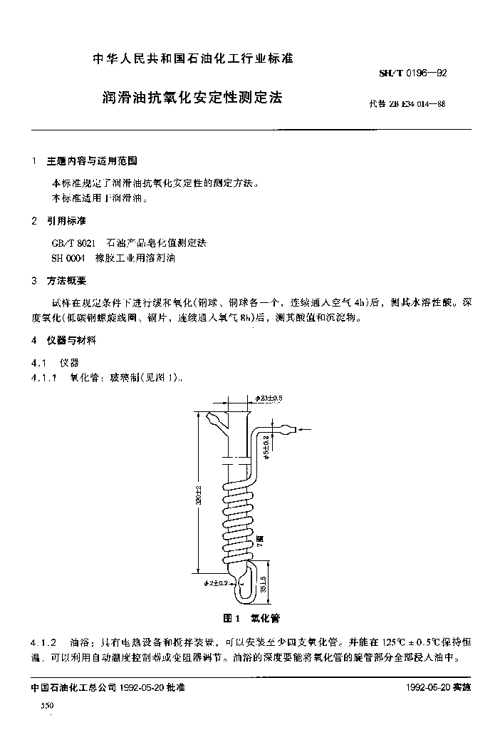 SH/T 0196-1992 润滑油抗氧化安定性测定法