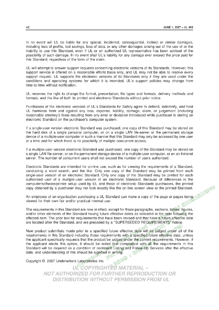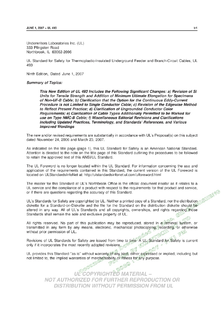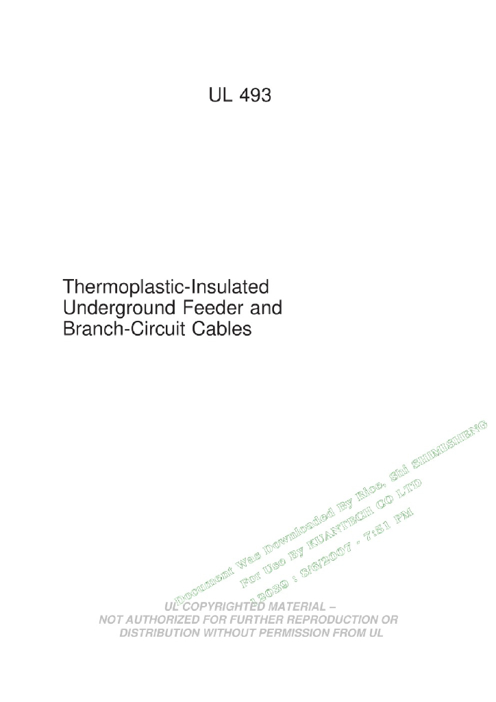 UL 493-2007 热塑性绝缘地下馈电线和支路电缆