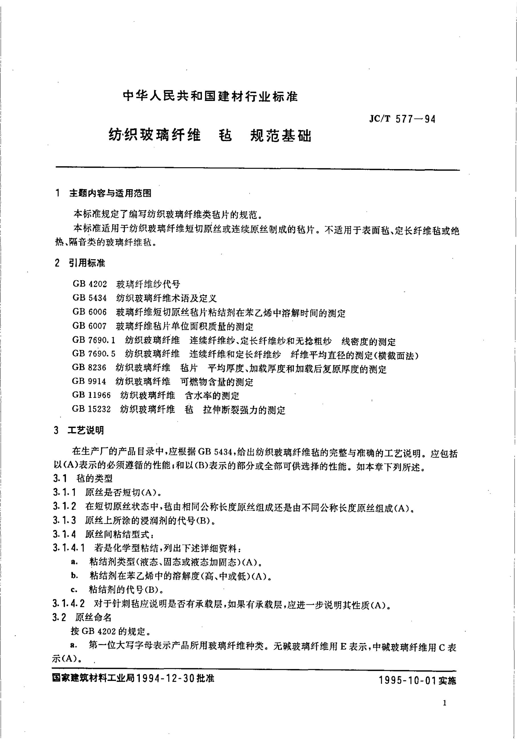 JC/T 577-1994 纺织玻璃纤维 毡 规范基础