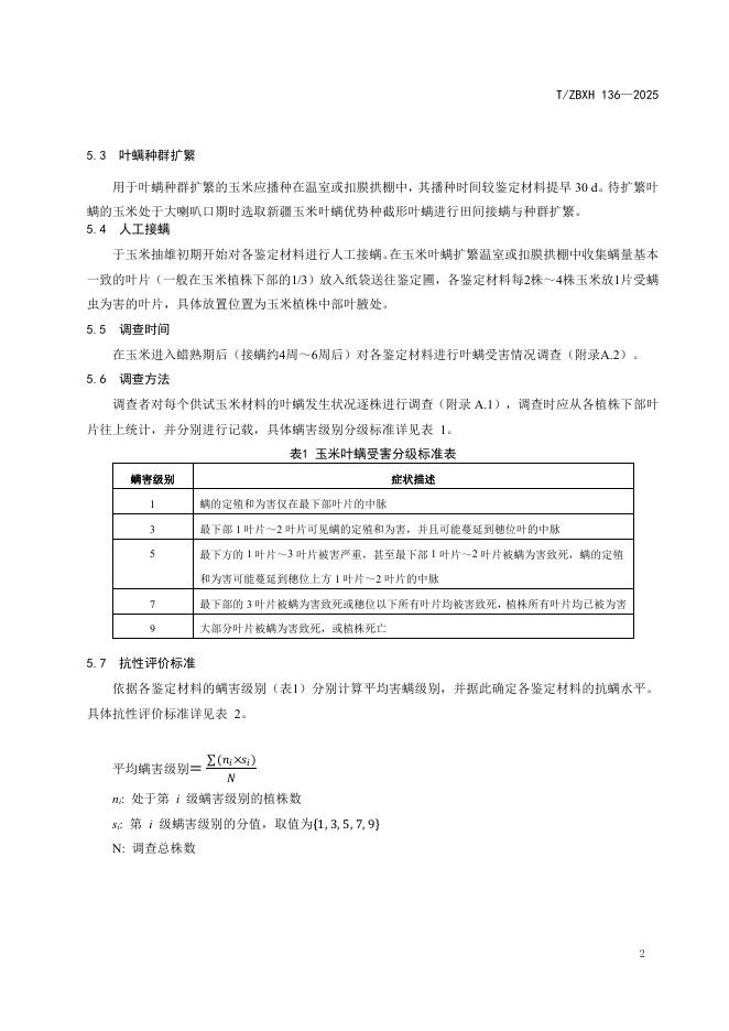 T/ZBXH 136-2025 玉米抗螨性鉴定技术规程