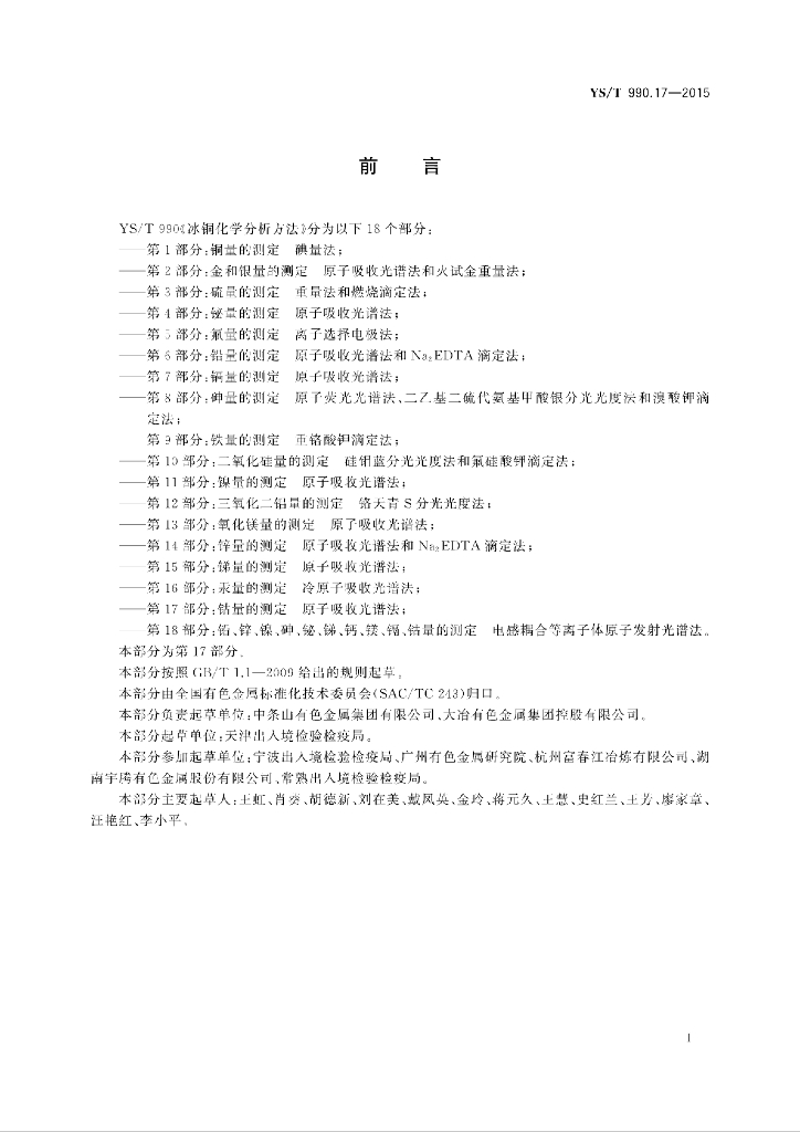 YS/T 990.17-2015 冰铜化学分析方法 第17部分:钴量的测定 原子吸收光谱法