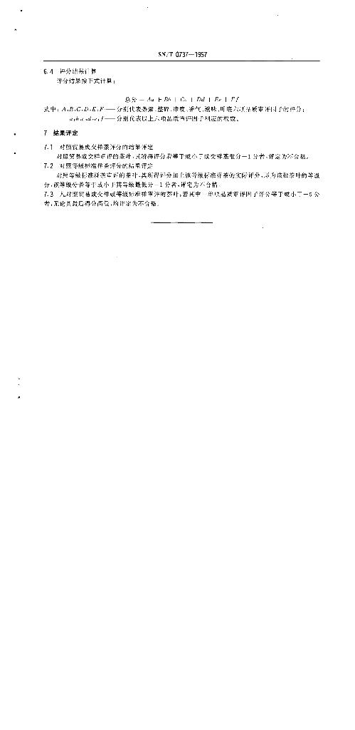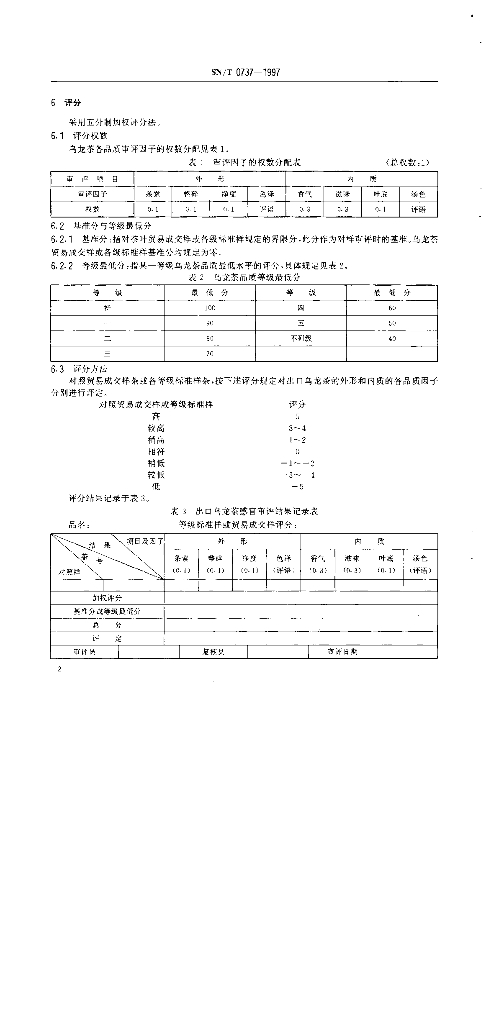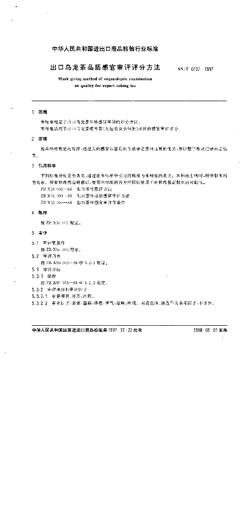 SN/T 0737-1997 出口乌龙茶品质感官审评评分方法