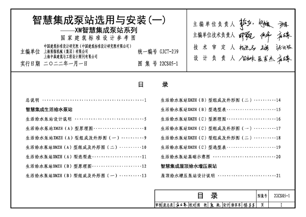 22CS05-1 智慧集成泵站选用与安装(一)XM智慧集成泵站系列参考图集