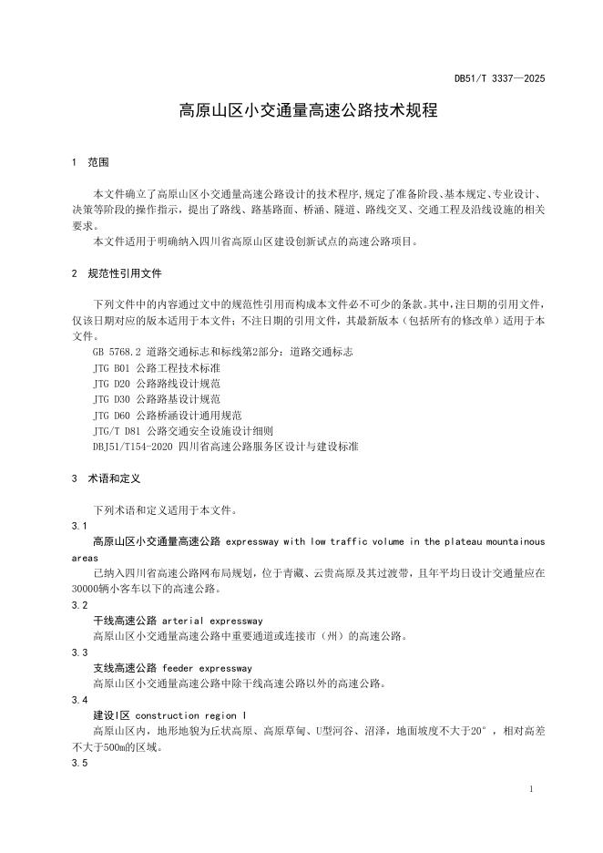 DB51/T 3337-2025 高原山区小交通量高速公路技术规程