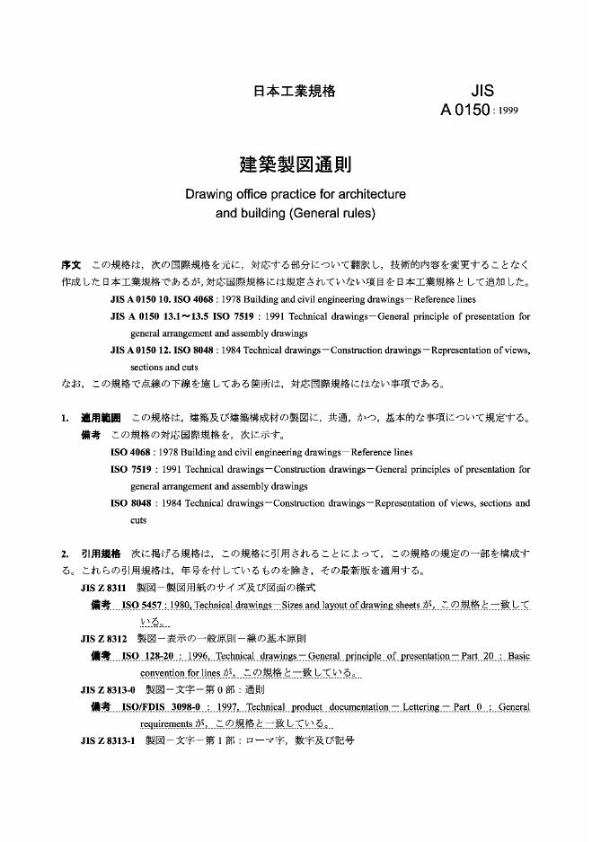 JIS A0150-1999 建筑制图通则