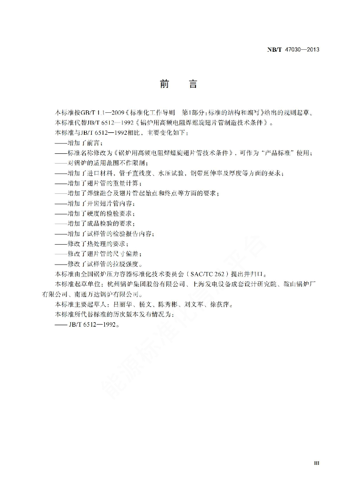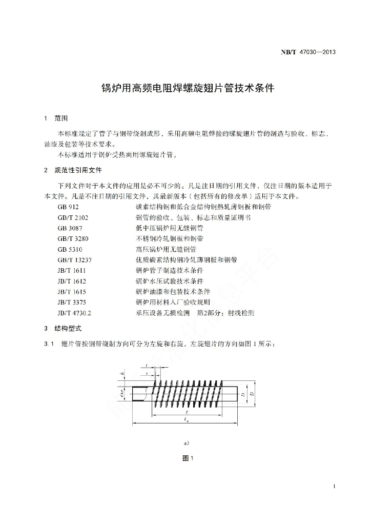 NB/T 47030-2013 锅炉用高频电阻螺旋翅片管技术条件