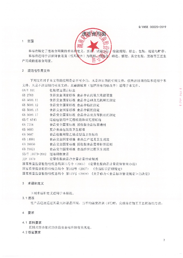 Q/AXWQ 0004S-2019 速冻食用菌