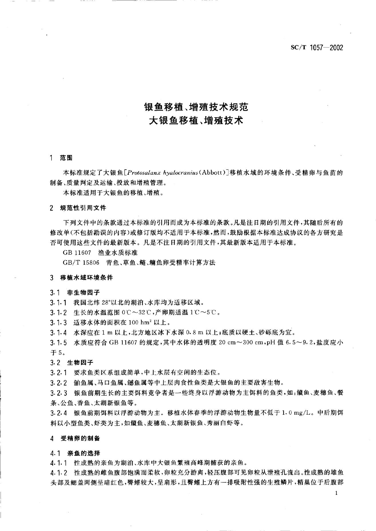 SC/T 1057-2002 银鱼移植、增殖技术规范 大银鱼移植、增殖技术