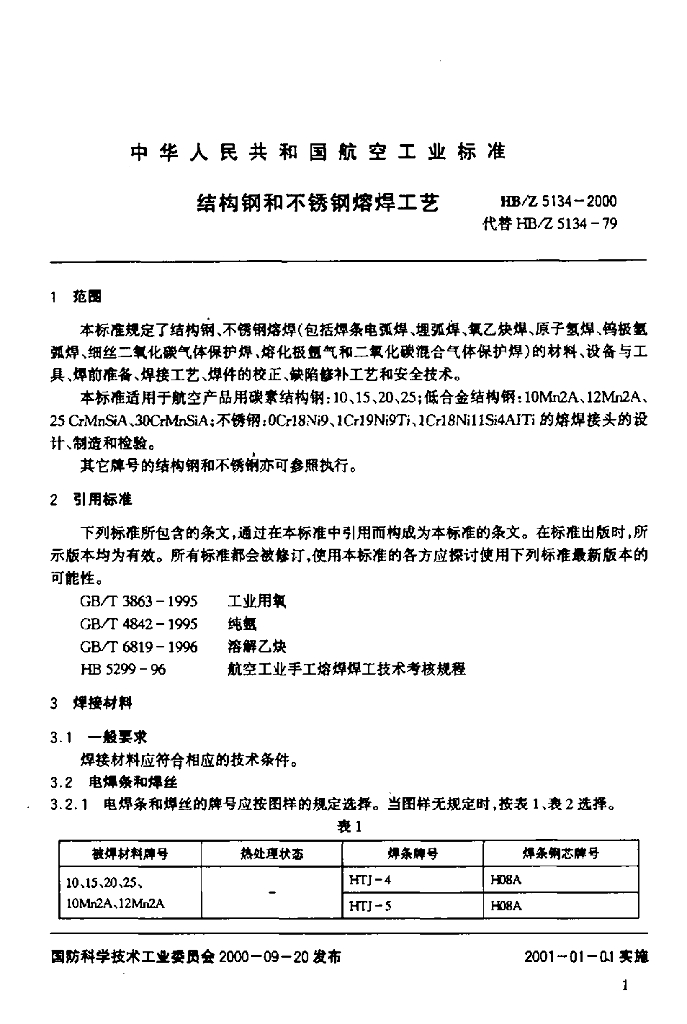 HB/Z 5134-2000 结构钢和不锈钢熔焊工艺