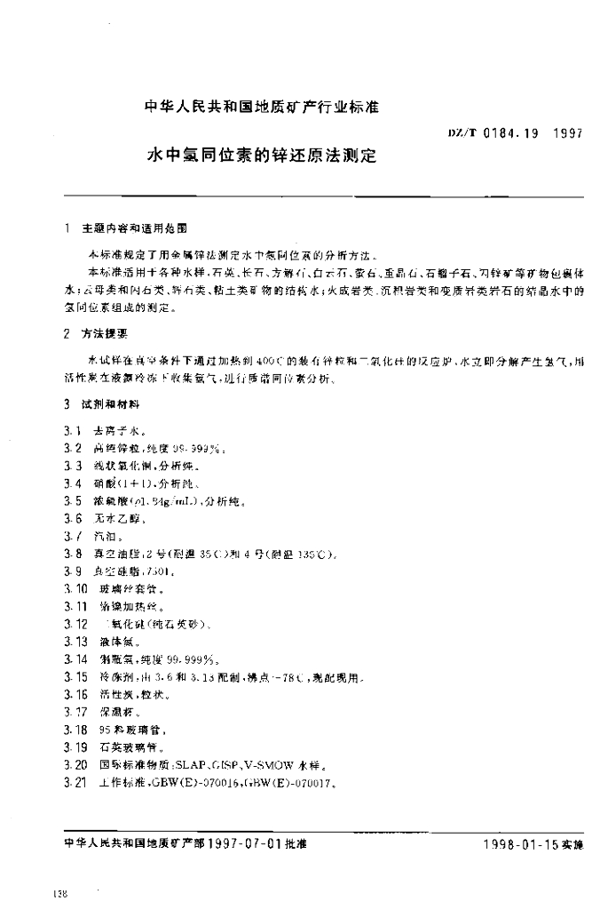 DZ/T 0184.19-1997 水中氢同位素的锌还原法测定