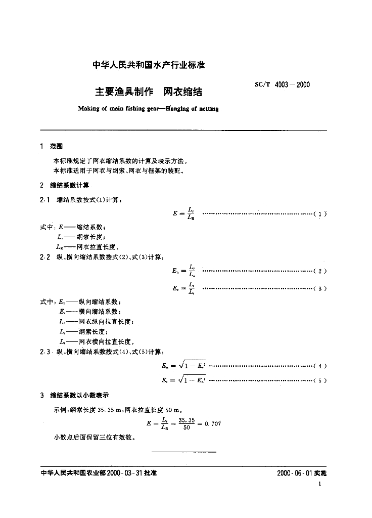 SC/T 4003-2000 主要渔具制作 网衣缩结