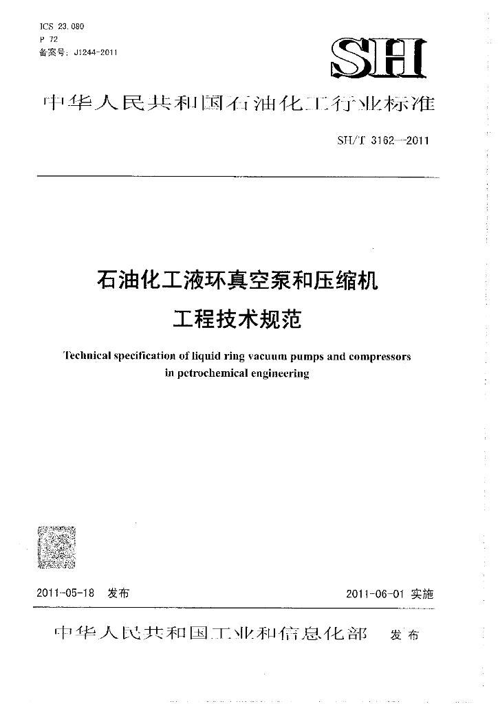 SH/T 3162-2011 石油化工液环真空泵和压缩机工程技术规范