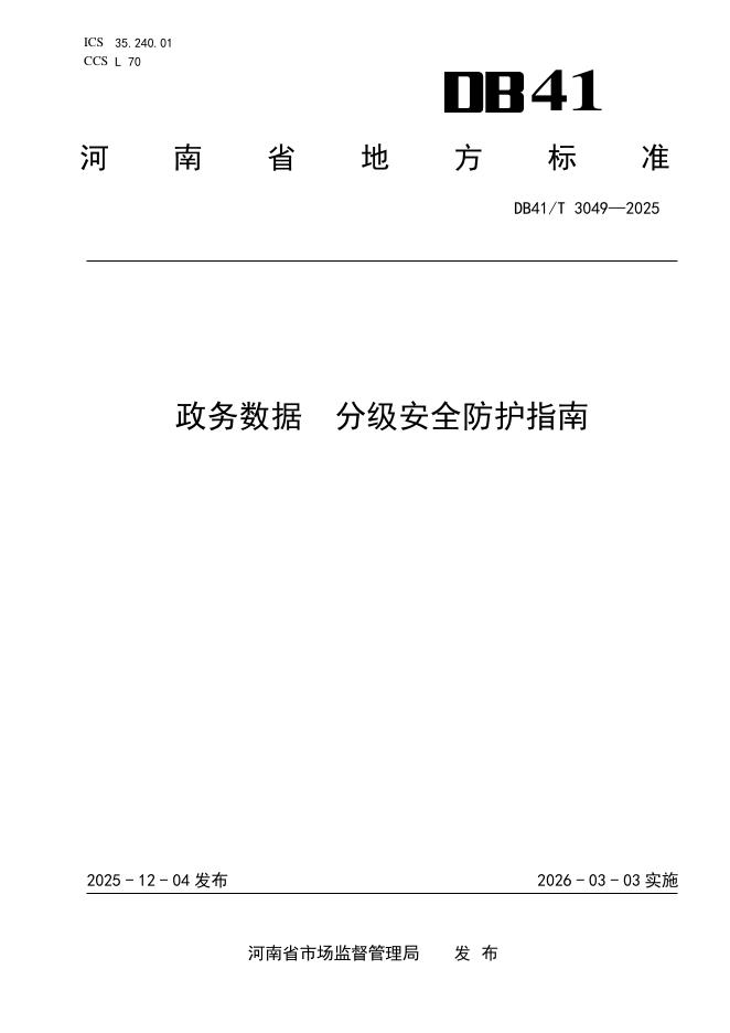 DB41/T 3049-2025 政务数据 分级安全防护指南
