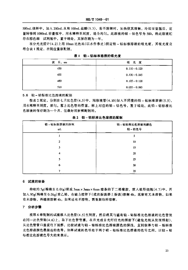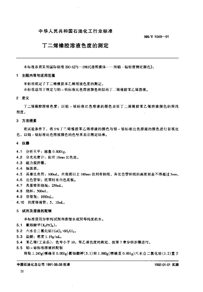 SH/T 1049-1991 丁二烯橡胶溶液色度的测定