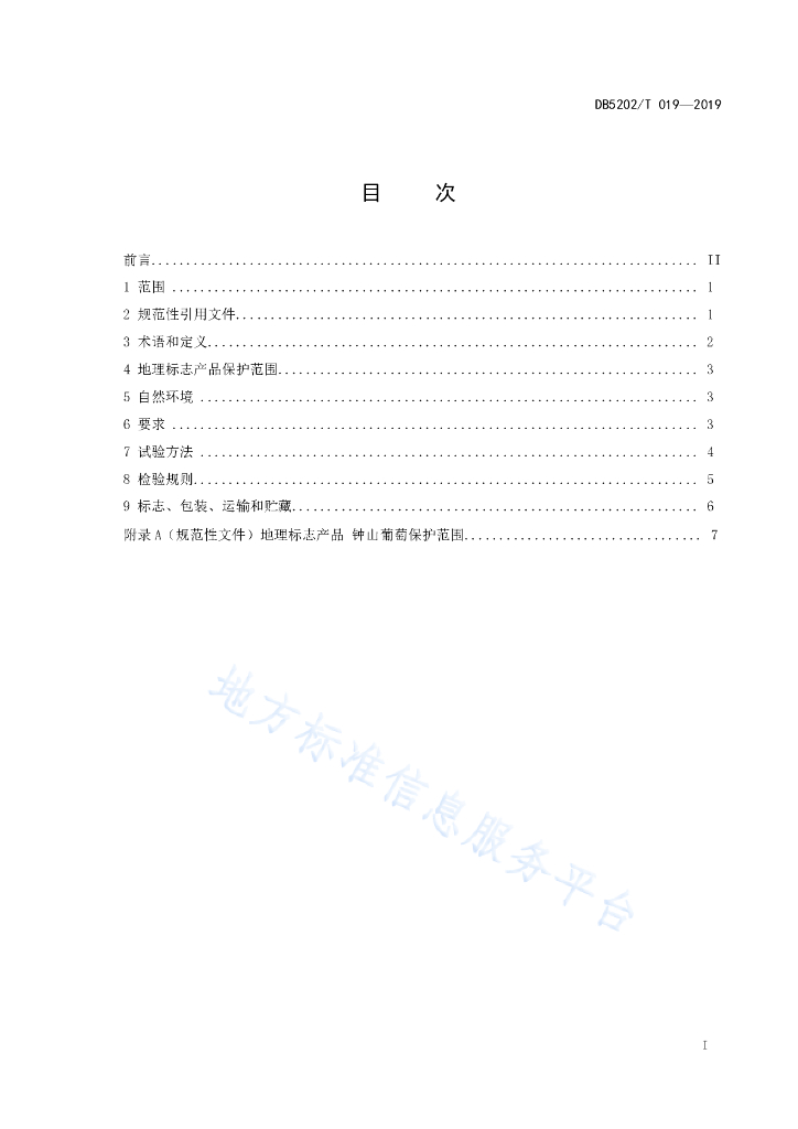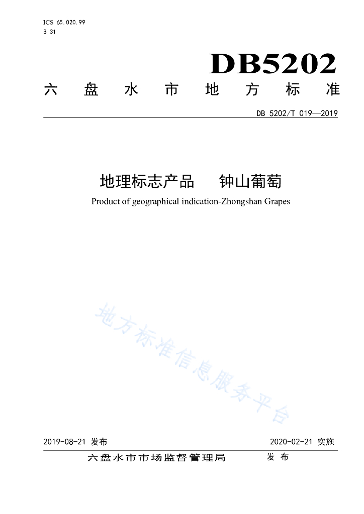 DB5202/T 019-2019 地理标志产品 钟山葡萄