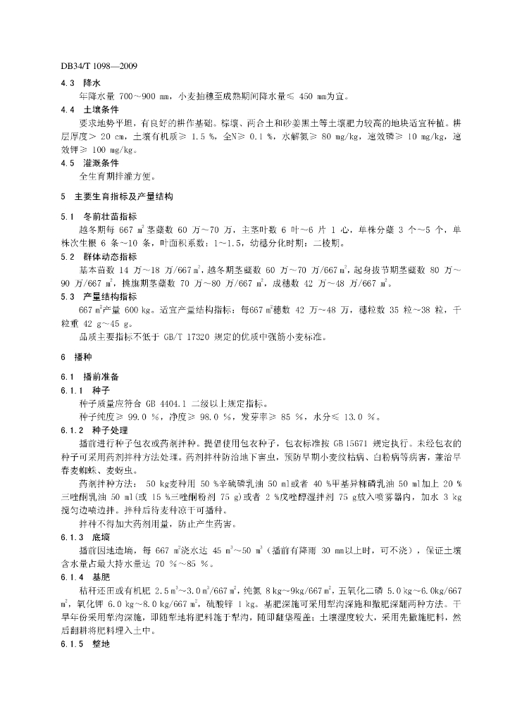 DB34/T 1098-2009 新麦18高产栽培技术规程