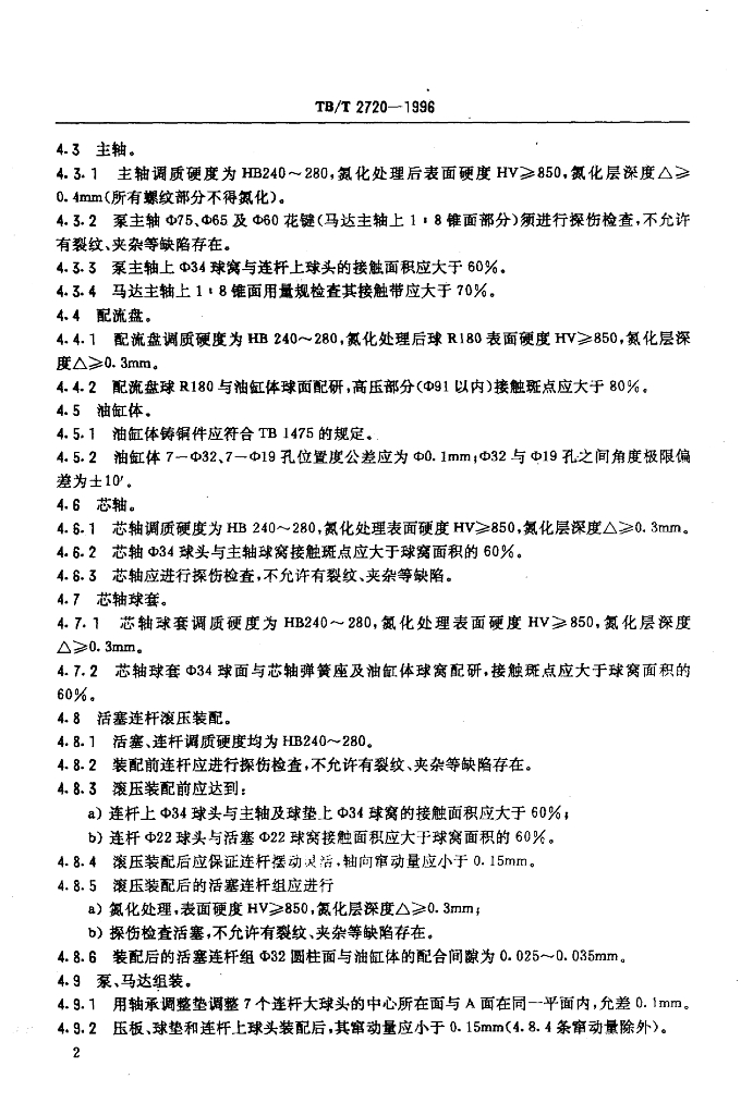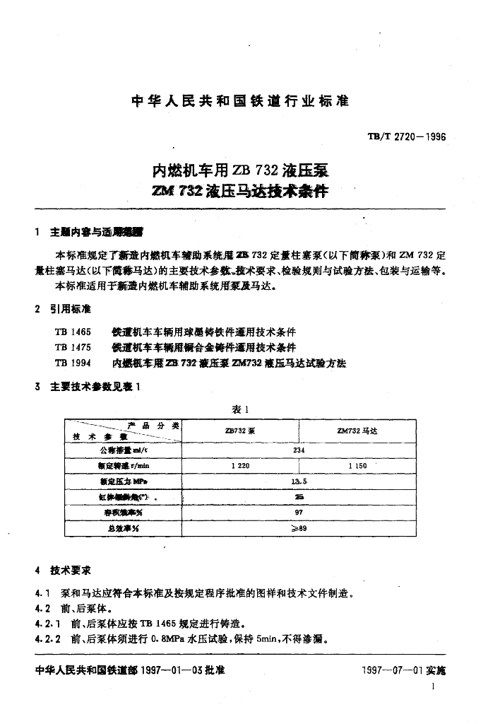 TB/T 2720-1996 内燃机车用ZB732液压泵 ZM732液压马达技术条件