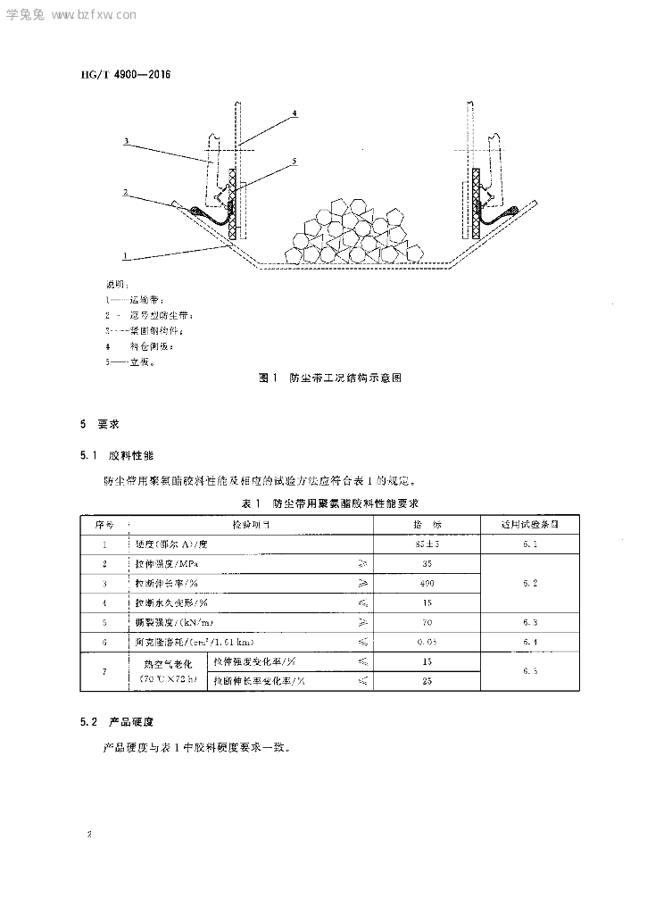 HG/T 4900-2016 带式输送机用聚氨酯防尘带