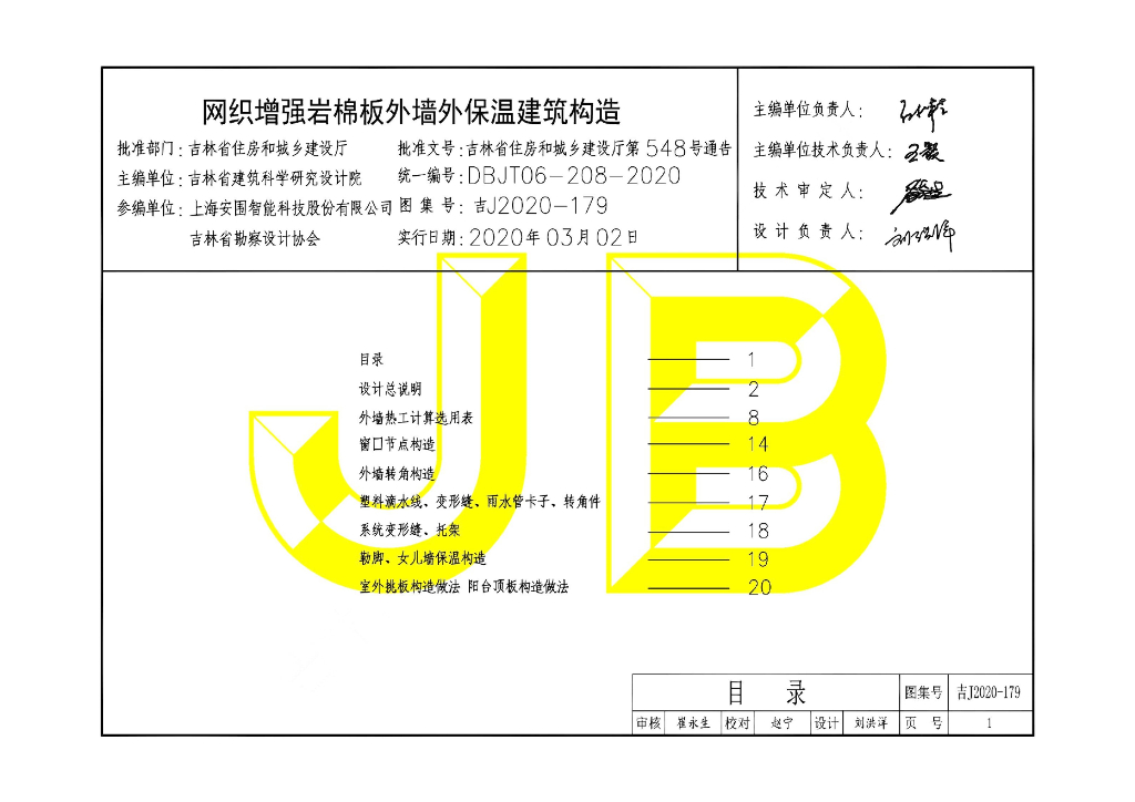 吉J2020-179 网织增强岩棉板外墙外保温建筑构造图集