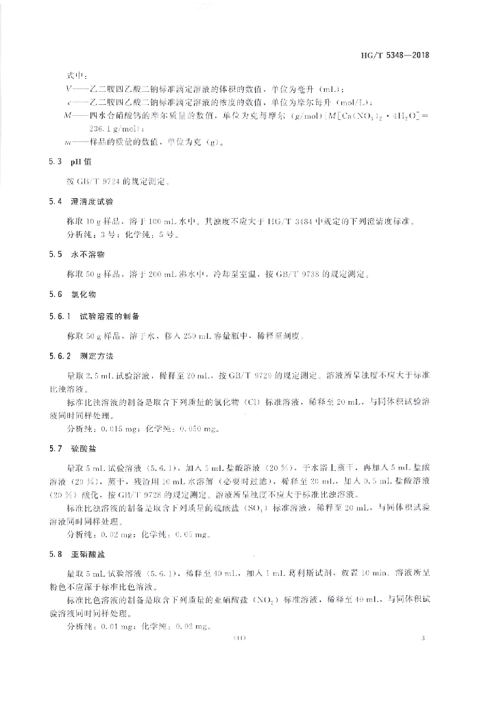 HG/T 5348-2018 化学试剂四水合硝酸钙