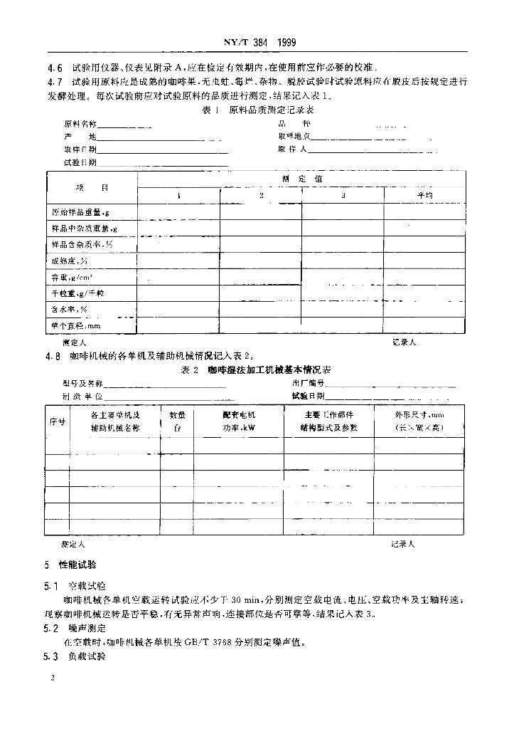 NY/T 384-1999 咖啡湿法加工机械设备 试验方法
