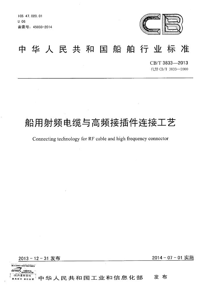 CB/T 3833-2013 船用射频电缆与高频接插件连接工艺