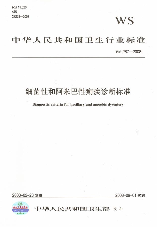 WS 287-2008 细菌性和阿米巴性痢疾诊断标准