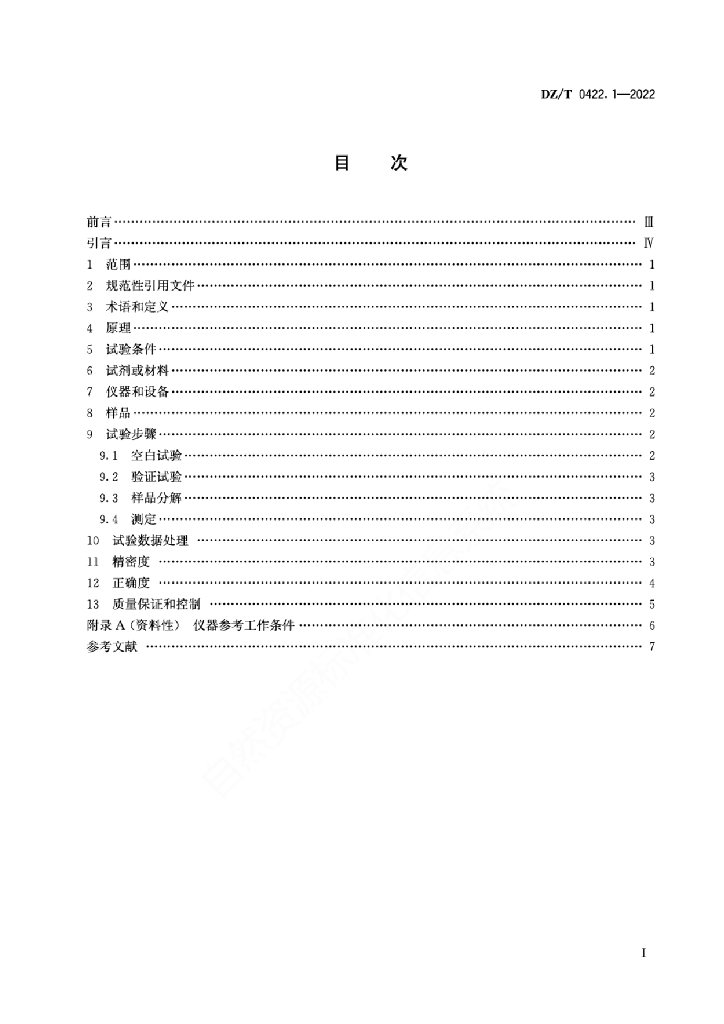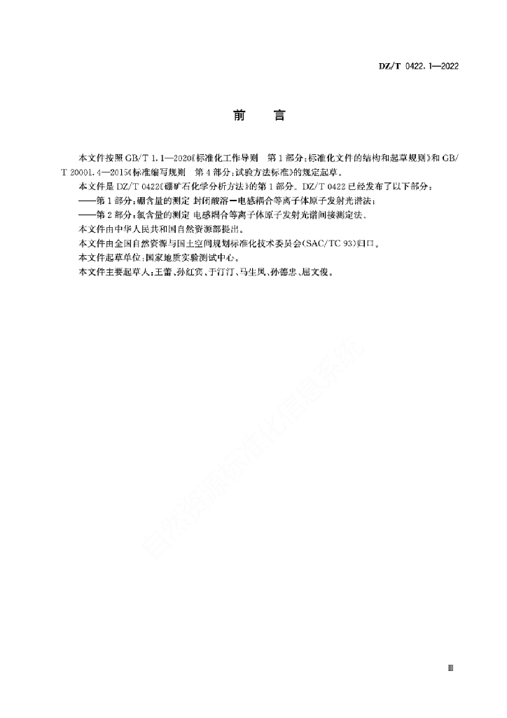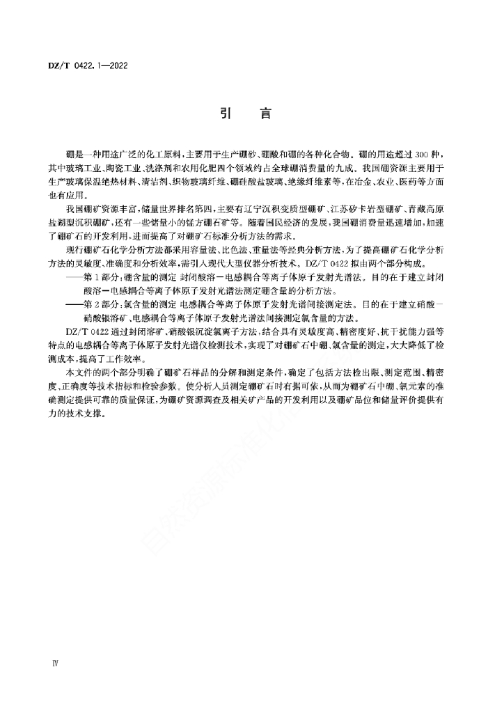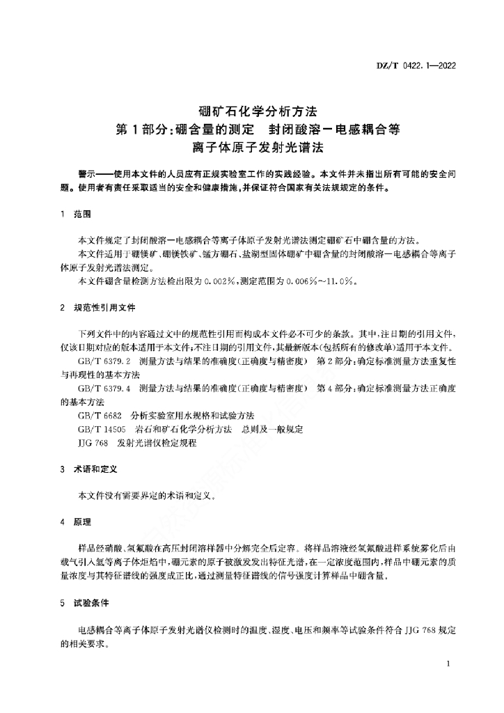 DZ/T 0422.1-2022 硼矿石化学分析方法 第1部分:硼含量的测定 封闭酸溶-电感耦合等离子体原子发射光谱法
