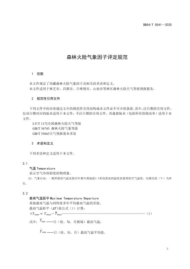 DB54/T 0541-2025 森林火险气象因子评定规范